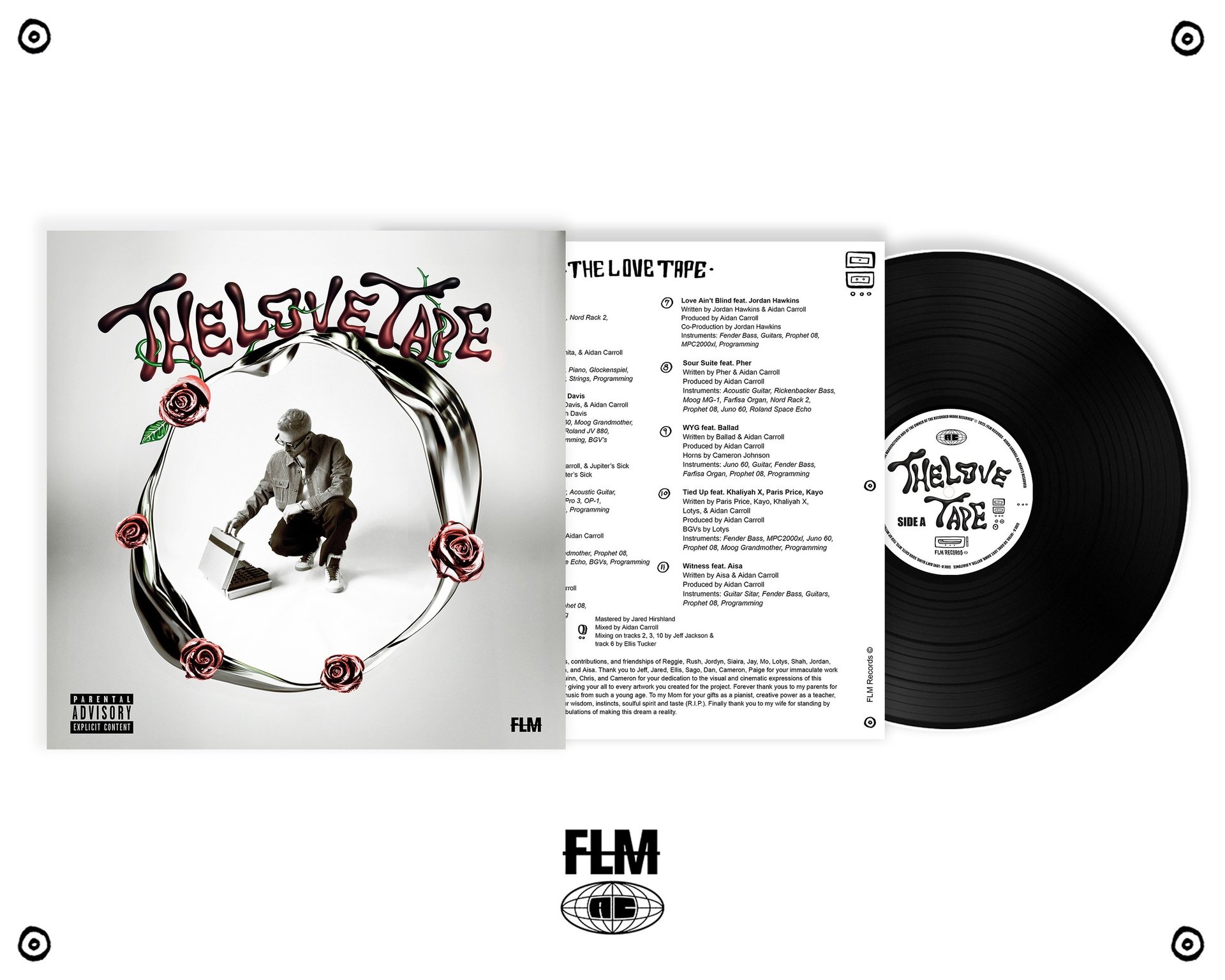 Aidan released his debut producer album "THE LOVE TAPE" in September 2024 through his label FLM Records. The project features some of the most exciting upcoming artists in the industry on their way to be future stars. AC collaborated with many artists among his Los Angeles community, as well as around the country. Drawing inspiration from sounds of the 70s through the 2000s, The Love Tape is laden with seductive basslines, sonics, and lush analog instrumentation.